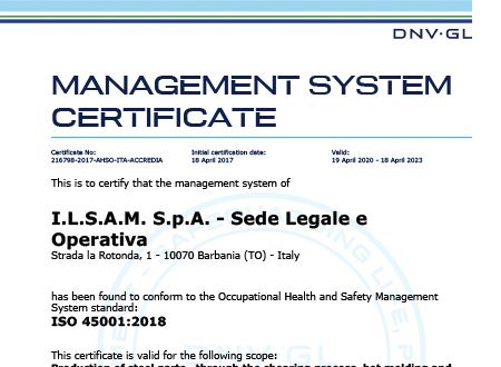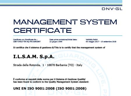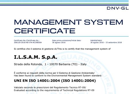 I.L.S.A.M. has obtained the following certifications through the years: ISO 9001 Quality Management, ISO 14001 Environmental Management, ISO 45001 Health and Safety Management.